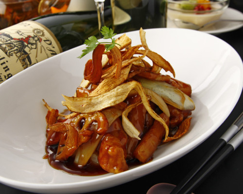 *根菜入り黒酢の酢豚