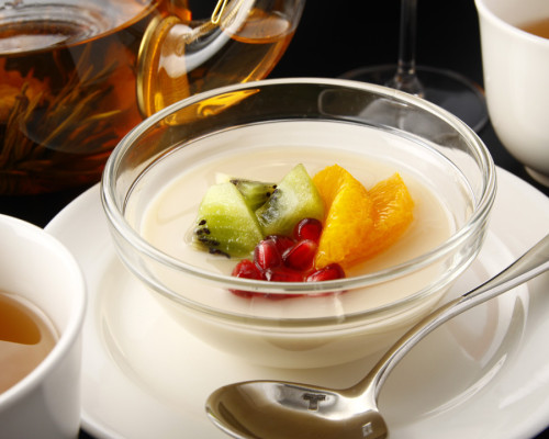 *フレッシュフルーツ入なめらか杏仁豆腐 650円