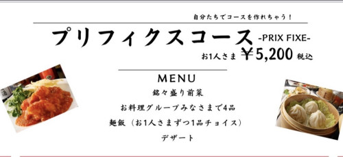 お料理のチョイスは写真よりお選びくださいませ。![プリフィクスコース お1人様 ¥5,200〔90分飲み放題もプラスできます!お1人様瓶ビールの場合¥1,800、生ビールの場合¥2,300]](https://cdn.goope.jp/86964/260328220505-69c7d2017fda1_l.jpg)