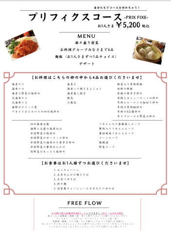 お料理のチョイスは写真よりお選びくださいませ。![プリフィクスコース お1人様 ¥5,200〔90分飲み放題もプラスできます!お1人様瓶ビールの場合¥1,800、生ビールの場合¥2,300]](https://cdn.goope.jp/86964/260328220505-69c7d2017fda1_l.jpg)